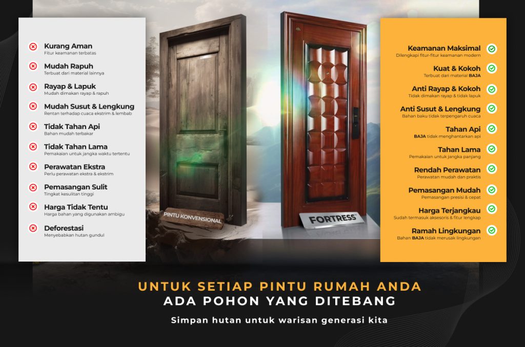 Kami menghadirkan solusi melalui pintu dengan material baja berkualitas tinggi yang menggabungkan: